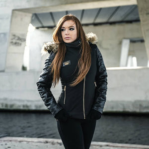 Wärmend gefütterte Jacke aus Polyester und PU-Leder.